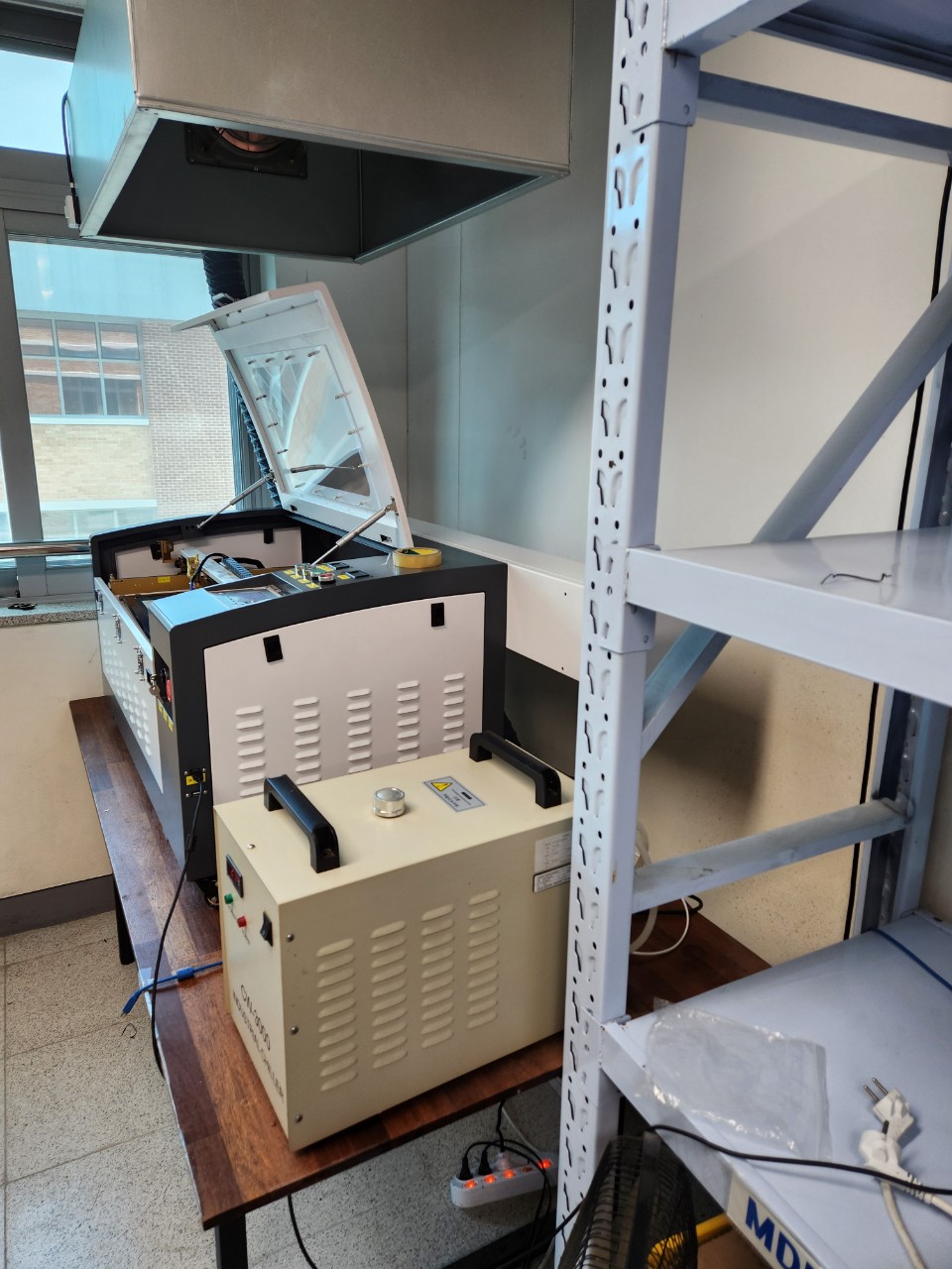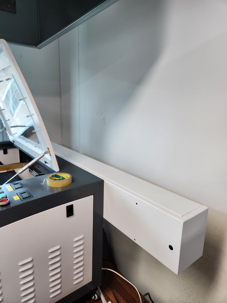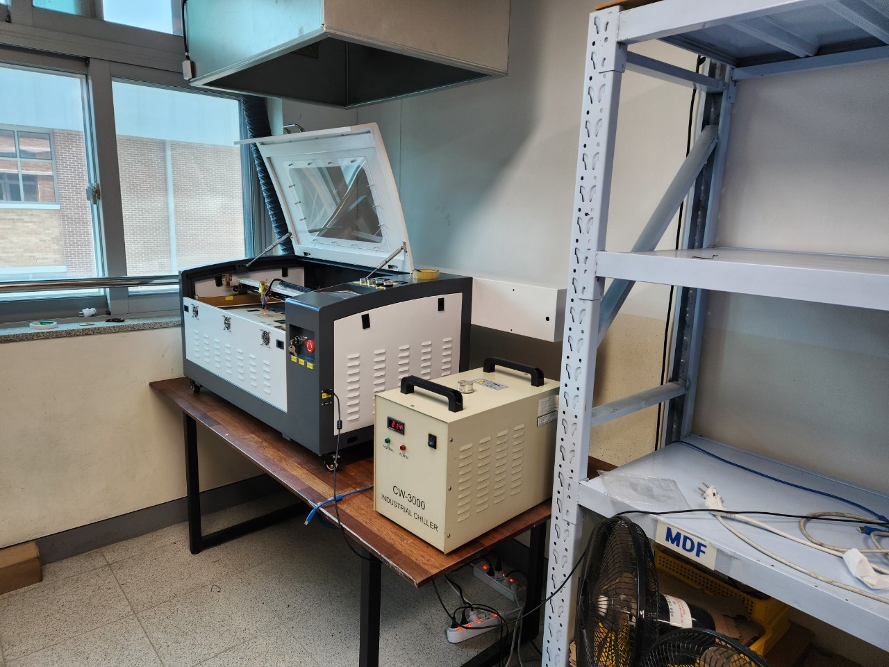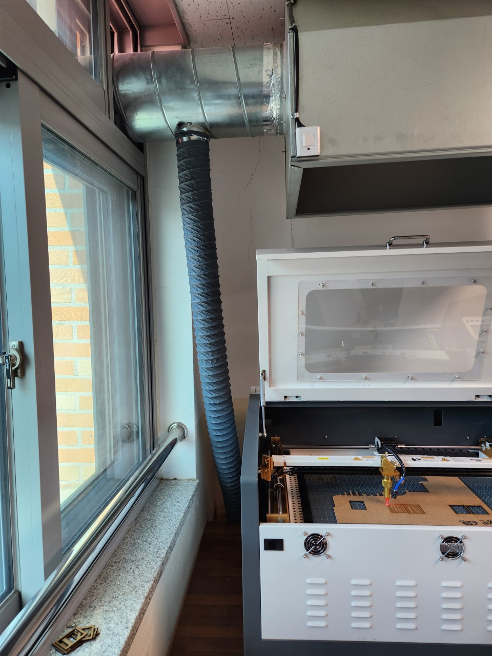 그리고 환기팬 시설이 있어서 거기에다 레이저조각기에서 발생하는 냄새와 분진이 빠져나갈수 있도록