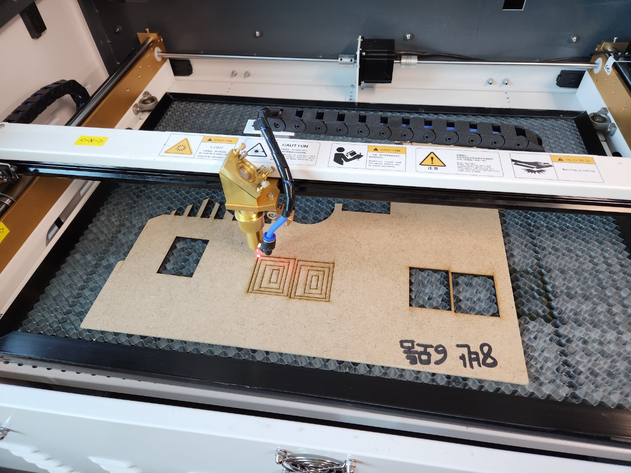 연결 작업을 하고 난뒤에 레이저조각기 테스트도 한번 시작하였습니다.